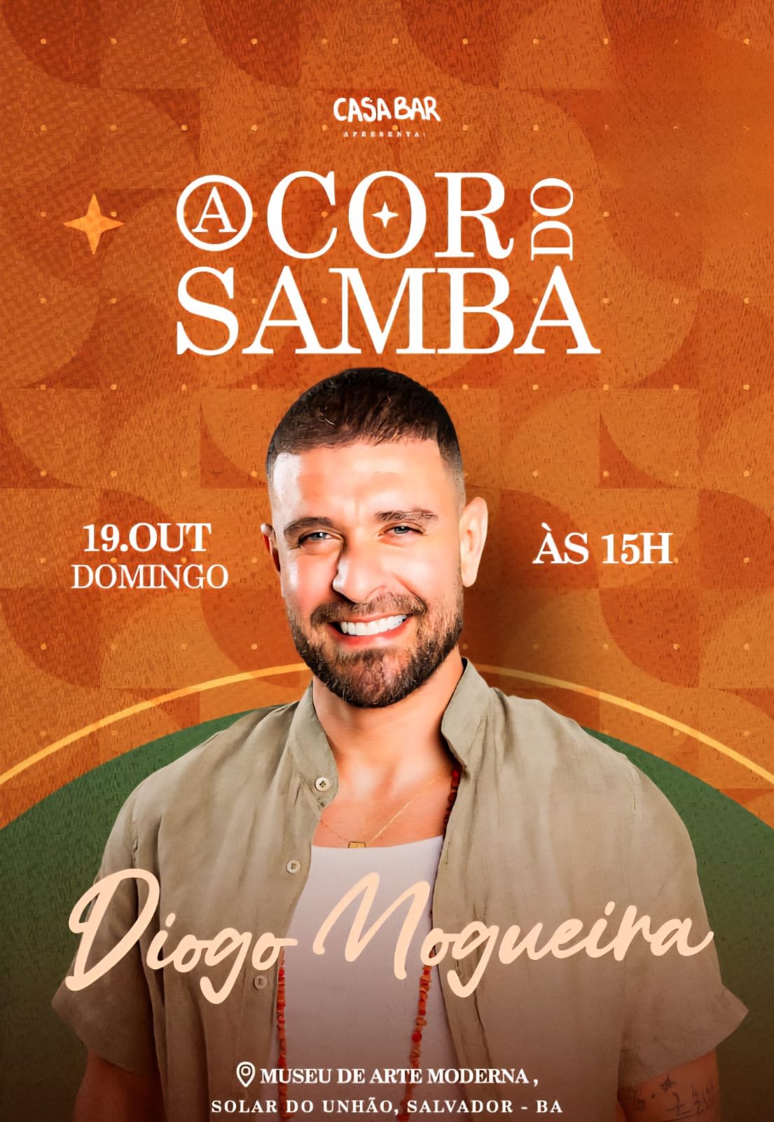 Realizado pelo Casa Bar, o evento promete uma tarde inesquecível, reunindo boa música, energia contagiante e o clima único do pôr do sol no MAM. Diogo Nogueira, com sua voz marcante e carisma inconfundível, vai embalar o público com sucessos da carreira e clássicos que fazem do samba um dos maiores símbolos da cultura nacional.