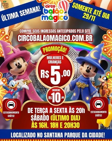 O circo também oferece meia-entrada para crianças até 12 anos, estudantes e idosos. Os ingressos podem ser adquiridos online com antecedência.
