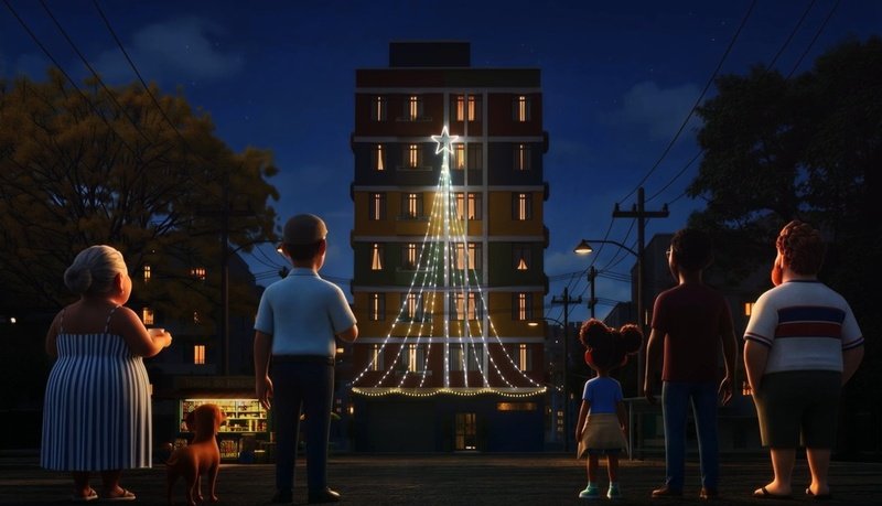 A história acompanha o cotidiano tipicamente brasileiro de um prédio, onde o porteiro Aureliano participa ativamente na vida dos moradores para ajudar nos preparativos para o Natal, da montagem da árvore à decoração. Na noite da ceia, ele se vê sozinho, até que uma queda de energia o leva a descobrir uma surpresa: todos os moradores, incentivados pela menina Cora, se reuniram para celebrar com ele e compartilhar a refeição.