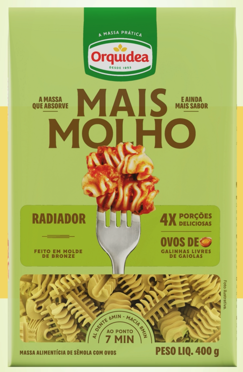 Marcelo Tondo Tissot, Diretor da Orquidea, também aponta a necessidade de inovação constante. “O principal desafio para a nossa empresa é continuar crescendo em um mercado que tende a mudar hábitos de consumo. Seguiremos inovando em produtos e também na forma de atrair o consumidor dentro do ponto de venda”. Em 2025, a principal novidade da marca foi o lançamento das Massas Mais Molho. “São feitas em molde de bronze, o que faz com que a massa absorva mais molho, consequentemente terá mais sabor. Além deste diferencial, essas massas são feitas com ovos de galinhas livres de gaiolas. A linha está disponível em cinco cortes sendo: espaguete, linguine, parafuso furadinho, rigatone riscado e radiador”.